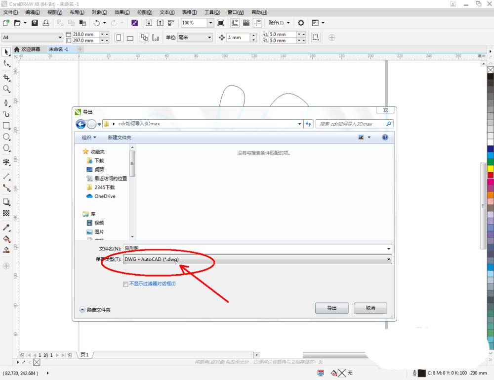 3、點擊【文件】-【導出】,彈出導出設置欄后,將導出文件格式設置為:DWG格式并將按圖示設置好cad版本,點擊【確定】保存好dwg文件(如圖所示);