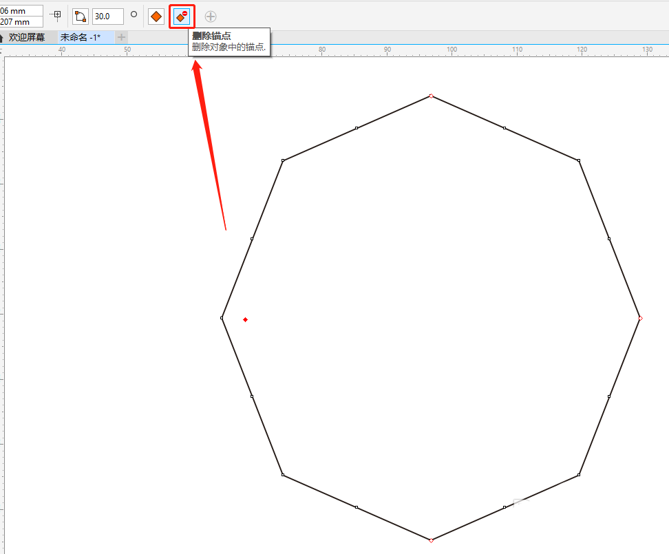 5、點擊屬性欄上【刪除錨點】可以刪除選擇的錨點。