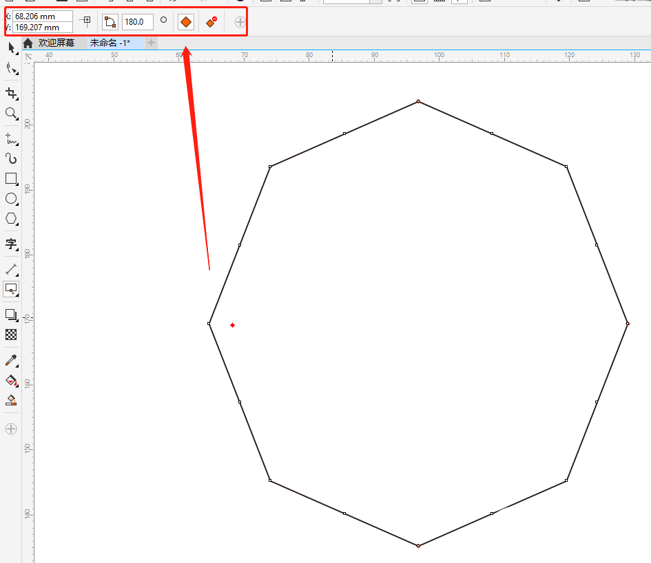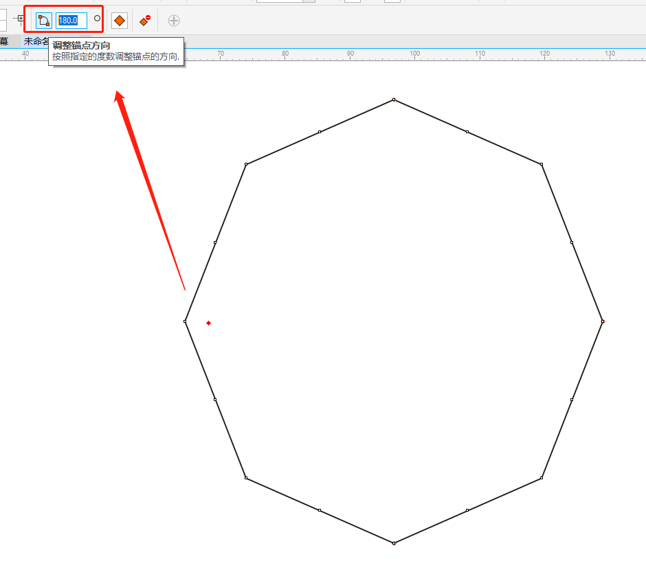 3、選擇錨點后,可以通過屬性欄調整錨點參數。可以點擊屬性欄上的【調整錨點方向】讓錨點按照指定度數調整方向。