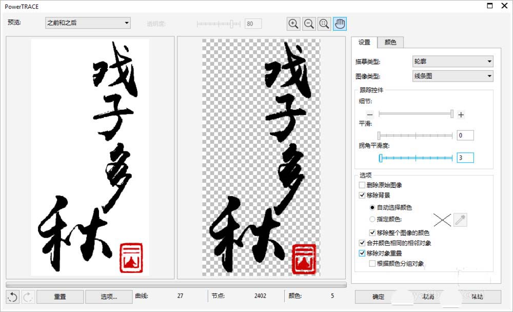 3、添加古風(fēng)文字,小編電腦受字體限制,所以網(wǎng)上隨意找的一個字體,導(dǎo)進(jìn)CDR,執(zhí)行描摹位圖操作。