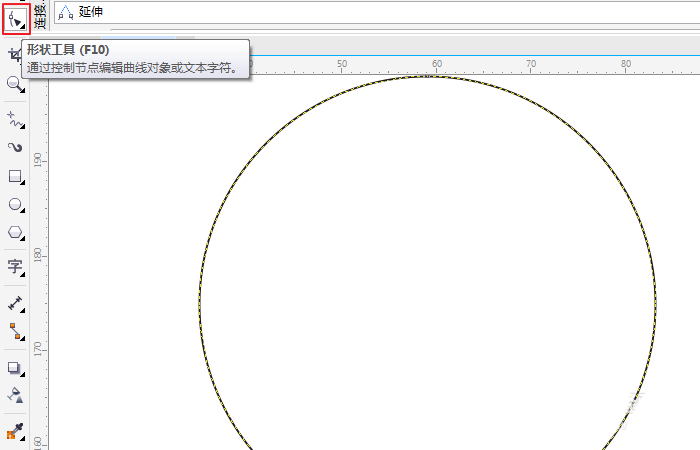 3、下面我們選擇"形狀工具"(快捷鍵是f10),出現手柄之后,我們就可以調節節點了,如圖所示;