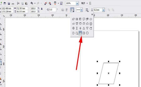 5、單擊上方的平行四邊形按鈕。
