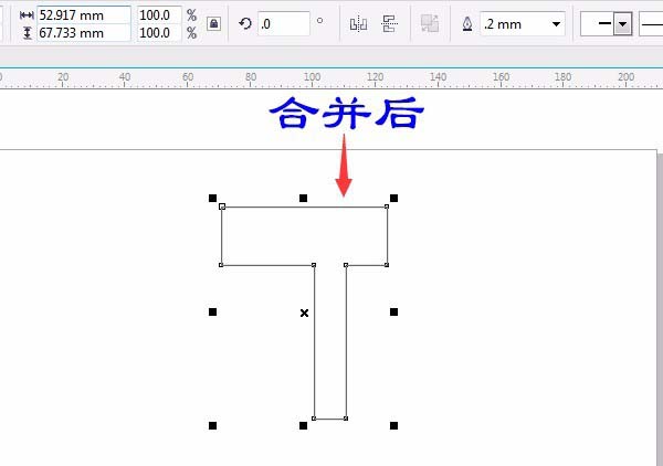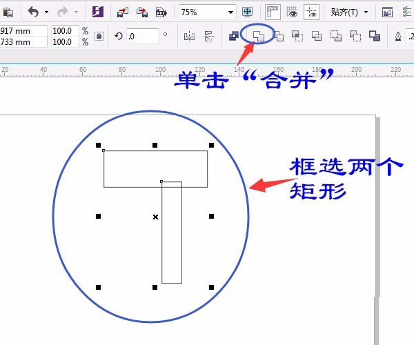 2、按空格鍵切換或單擊用“選擇工具”框選兩個矩形,單擊屬性欄中單擊“合并”,結果如圖: