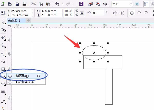 3、單擊用“橢圓形工具”畫出一個橢圓,并移動位置,如圖所示:
