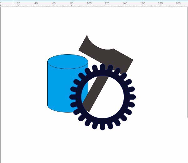 8、齒輪、捶、圓柱三個圖形在一些,旋轉圖形,選不同的圖形按快捷鍵:Ctrl+PgDn圖形向下一層順序調整。如圖: