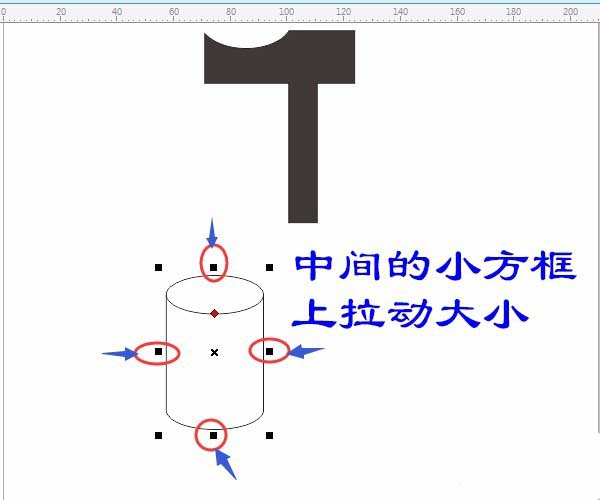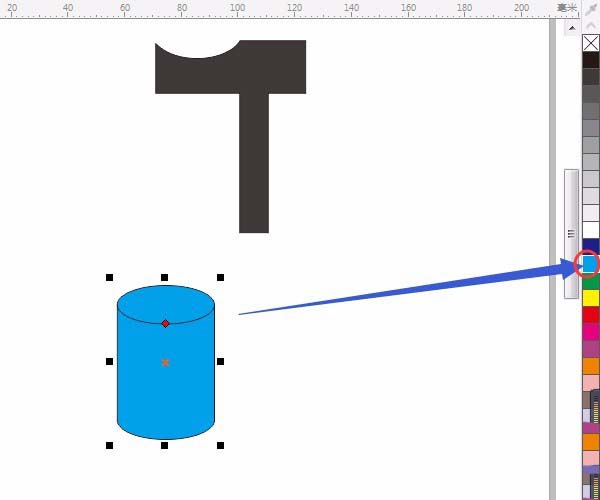 7、按空格鍵切換成“選擇工具”調整圓柱形,中間的小方框上拉動大小。單擊“調色板”中的顏色填充顏色,如圖: