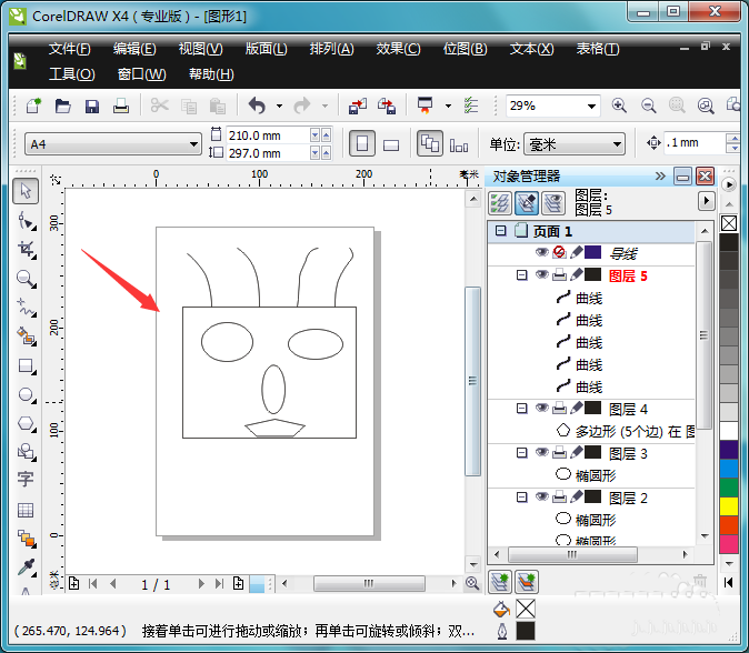 5、依次選擇其他的圖層,然后分別在每個(gè)圖層里繪制圖形,如圖所示: