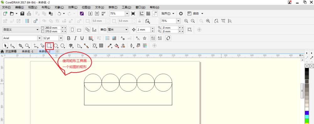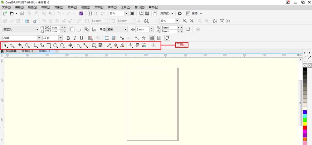 1、打開Corel DRAW軟件(這里用的是cdr 2017版本的軟件),新建空白文檔,為了方便使用,將工具欄放在屬性欄下方,如圖: