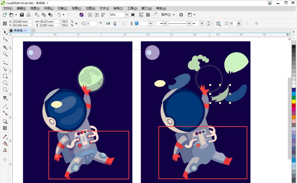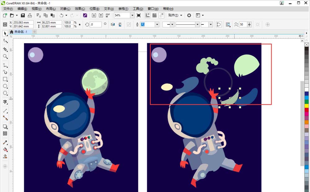 5、鼠標右鍵取消群組對象后,可以看到每個小元素也都可以單獨移動了。放大圖片后,可以看到不會變得模糊哦。