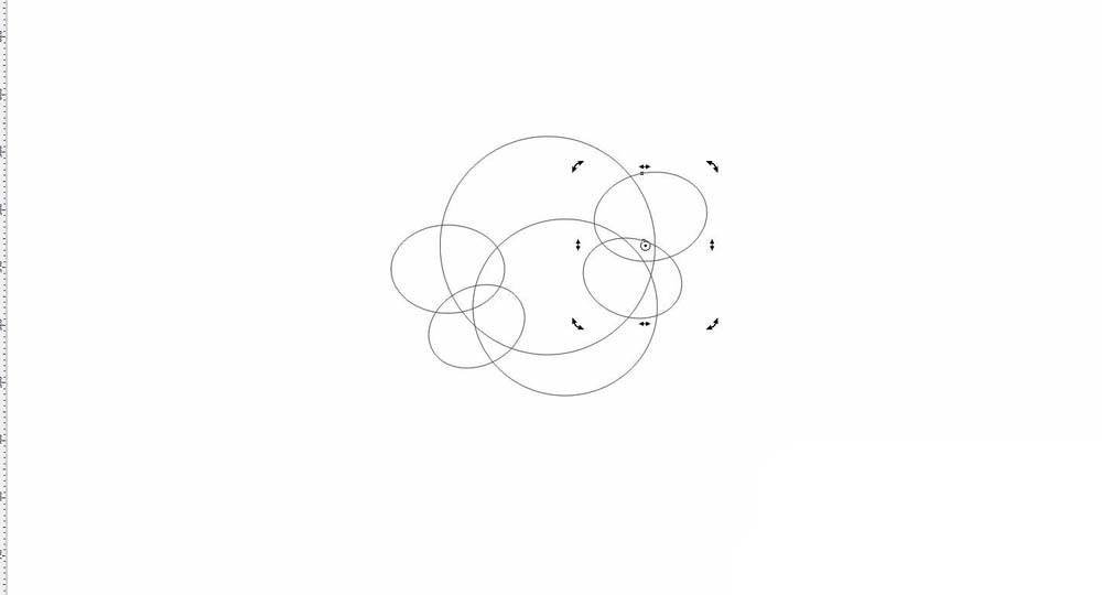 4、然后復制這兩個圓形,水平翻轉。當然也可以重新繪制兩個不同的圓都是可以的,這次向相反的方向旋轉一點點。做出右邊突出的兩個部分。然后選擇所有的圓形進行焊接。