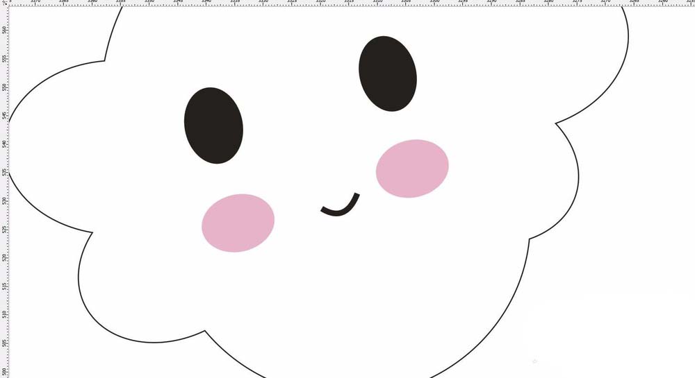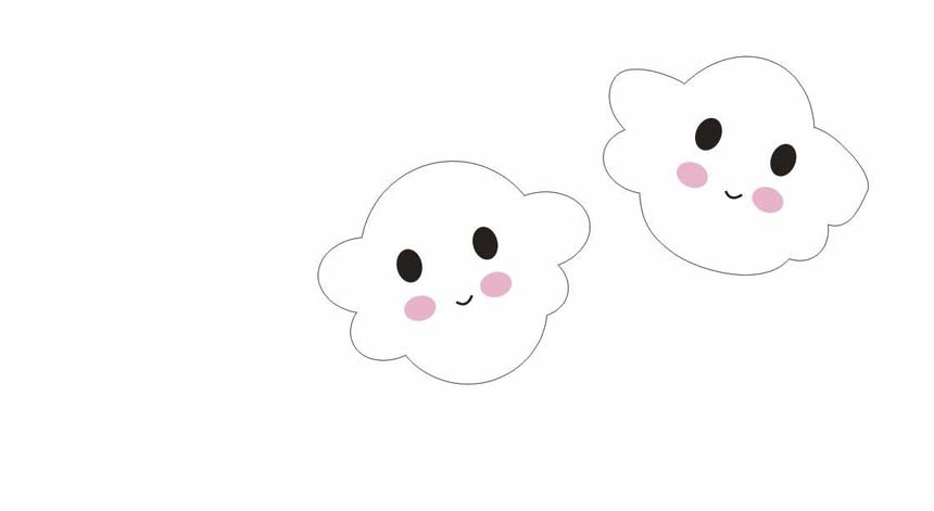 7、最后畫出兩個橢圓形填充為淺粉色。做出類似腮紅的效果。這樣一個可愛的白云圖形就做好了。我們可以復制一個,然后對輪廓進行稍微的調整,不要跟第一個完全一樣。旋轉一下角度,這樣就可以做出另一個效果的可愛白云。完成。