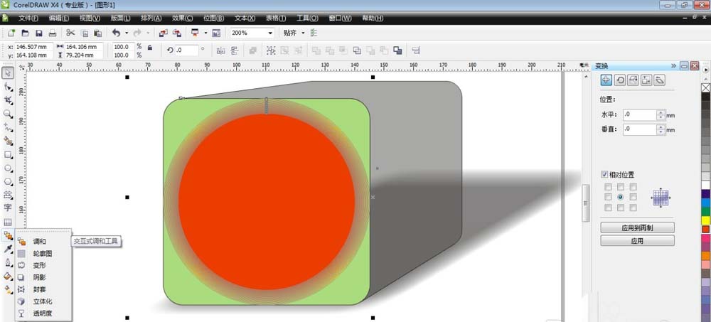 5、畫一個直徑5厘米的紅色正圓,與黃色的正圓進行中心對齊,讓兩個正圓進行交互式調和。