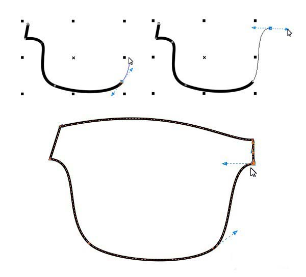 3、繼續(xù)添加節(jié)點,然后返回到起始節(jié)點,制作一個封閉的路徑。如果需要,使用形狀工具(F10)通過更改節(jié)點和控制手柄的位置來編輯曲線。