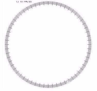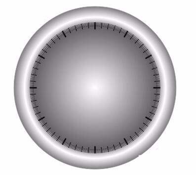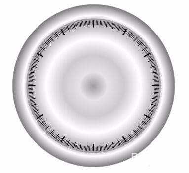 7、參照前面幾步,再話一條192.85mm、輪廓為1.411mm的直線,旋轉30度多次復制,再做一條直徑為172mm的正圓,后減前。第七步:畫一個比前面的圓更大一點的圓,并置于底層,去掉邊框,填充顏色為射線漸變:0%處為黑,20%處為90%黑,36%處為白,46%處為60%黑,100%處為白。
