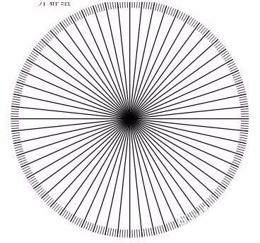 2、按住ALT+F8調處旋轉對話框,在角度中輸入1.2,按應用到再制,復制一條與原直線相差1.2度的直線,然后按住CTRL+D鍵不放,不停地復制直線,直到出現如下圖形并群組起來: