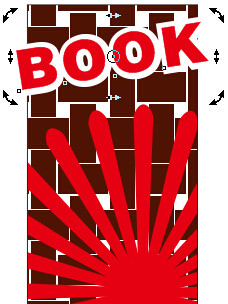 12、變換文字。選中添加了輪廓的文字,按住Shift鍵用鼠標(biāo)將其向外拖拽,使文字等比例放大,并旋轉(zhuǎn)文字,達(dá)到如圖所示的效果。