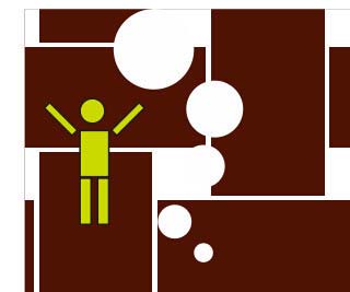 14、繪制圖形。利用“橢圓形工具”繪制出正圓,使用“矩形工具”繪制出矩形,將其組成一個人物的圖形,填充顏色,并繪制一些大小不一的正圓推行,將其進(jìn)行排列,得到如圖所示的氣泡效果。