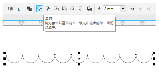 4. 使用“選擇工具”框選所有弧形并執行菜單欄中“合并”命令。