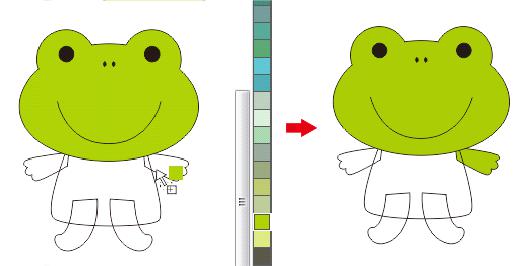 2. 使用調色板均勻填充對象的另一種方法是,使用鼠標左鍵將調色板中的色樣直接拖動到對象上,松開鼠標,即可將該顏色應用到對象上。