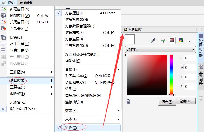 方法三或執行“窗口”>“泊塢窗”>“彩色”命令,打開“顏色泊塢窗”,選擇需要的顏色模式CMYK,并選擇顏色或手動自定義顏色,單擊“填充”將顏色填充到對象上去。顏色泊塢窗的具體使用方法可參考文章《CorelDRAW顏色泊塢窗詳解》。