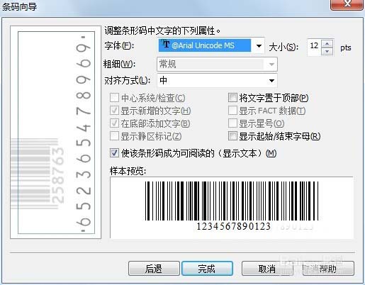 7、再單擊下一步,設置條形碼的字體,然后點擊完成。