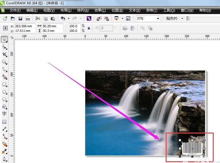 8、回到編輯界面,我們將條形碼的位置設定好,就將一個條形碼制作完成了!
