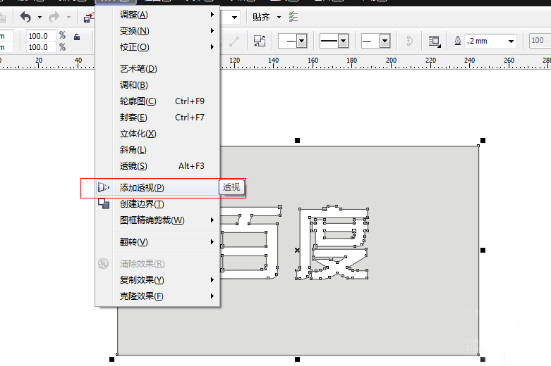 4、選效果---添加透視,調整到自己合適的視覺角度,同時按ctrl+q,將圖形轉換為曲線!
