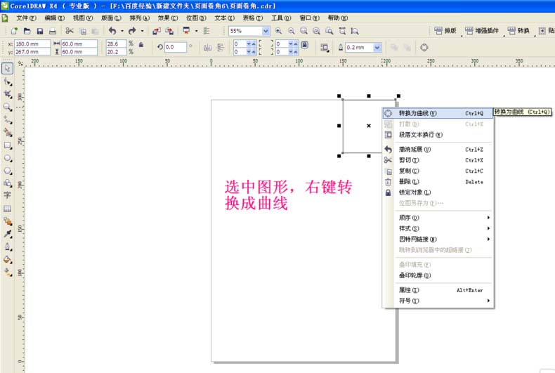 1、在頁面右上角畫個正方形,大小約60X60mm
