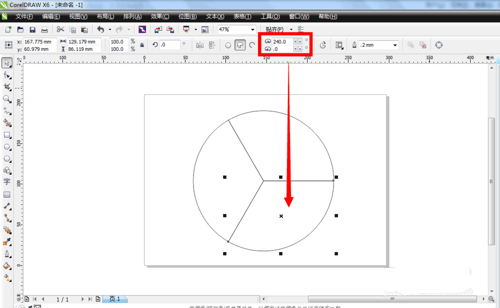3、要把一個(gè)圓劃分多少部分,最重要的就是在起始角度和結(jié)束角度欄設(shè)置好正確的角度數(shù)值