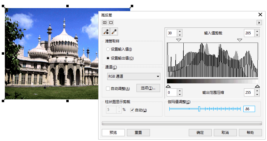 2. 單擊“位圖>自動調整”,它類似PS中的“自動色調”。自動調整是根據圖片實際情況自動感應的,是從圖像移除不自然的色偏的過程,包括色彩偏暗或過亮,這樣可使圖像顏色效果更真實干凈。