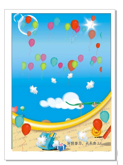 6、點(diǎn)擊文件——打開命令,找到我們之前找到好的氣球素材圖片,然后放到海報(bào)的合適位置,調(diào)整好大小位置即可;