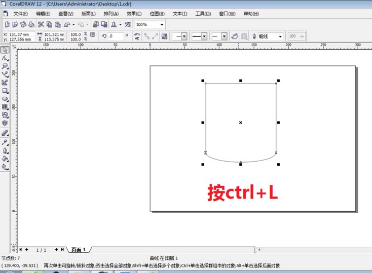 1、鼠標框選,選中兩條開放曲線,按ctrl+L,對圖形進行結合(合并).