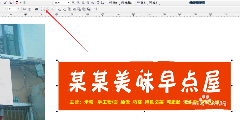 1、這里講的是客戶新做一個招牌,內容已經排好了,要做一個實際效果圖給客戶看,這里就可以用到透視效果。(透視效果必須是矢量圖形才能運用)