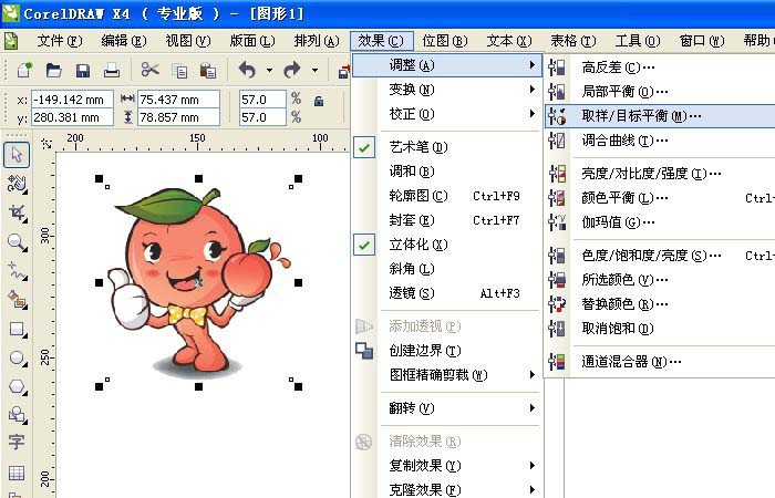 6、接著,鼠標左鍵單擊菜單【效果】>>【調整】>>【取樣目標平衡】,如下圖所示。給素材圖片添加一個取樣目標平衡效果。