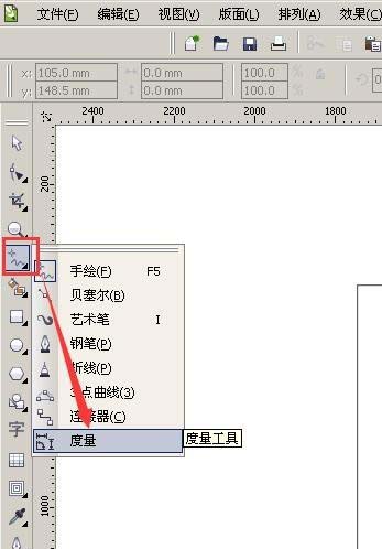 2、左側工具欄,第五個手繪工具,點那個小三角,選擇最后一個“度量工具”