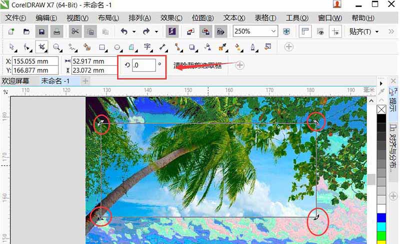4、要裁剪傾斜的圖形,我們可以先框選大概范圍,單擊框選區域進入旋轉模式,或者上方選擇旋轉角度