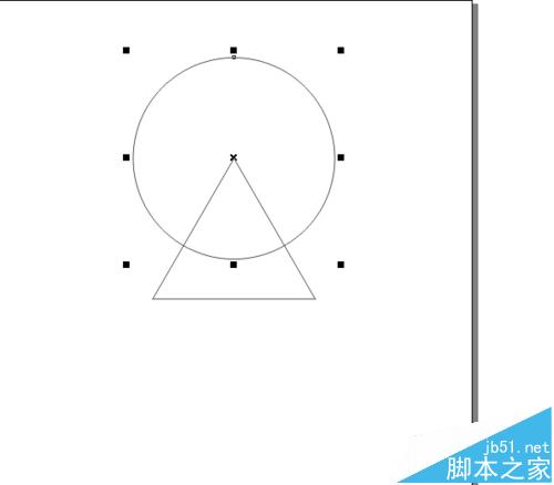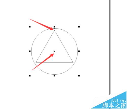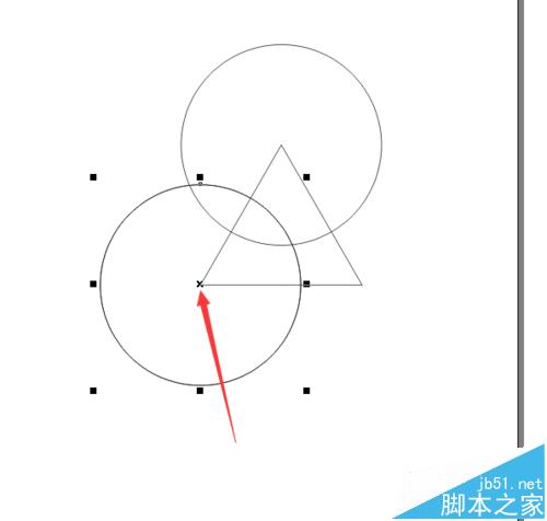 5、用選擇工具選擇上正圓,并且把鼠標放在圓心的位置上,然后按下鼠標,將圓心拖到三角形上邊的角上,如下圖的效果。