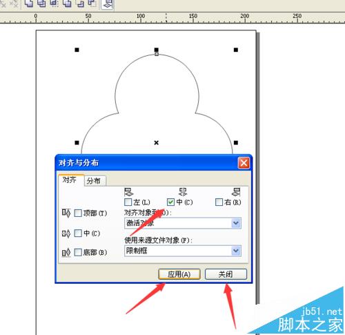 12、將左右居中勾選上,再點擊應用,最后點擊關閉。