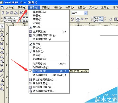 4、選擇菜單欄上的“查看”,將“對齊對像”勾選上。
