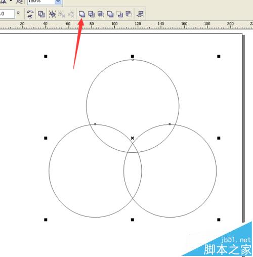 9、接著,將三個圓形都選擇上,再點擊屬性欄的“焊接”按鍵,對三個圓進行焊接。