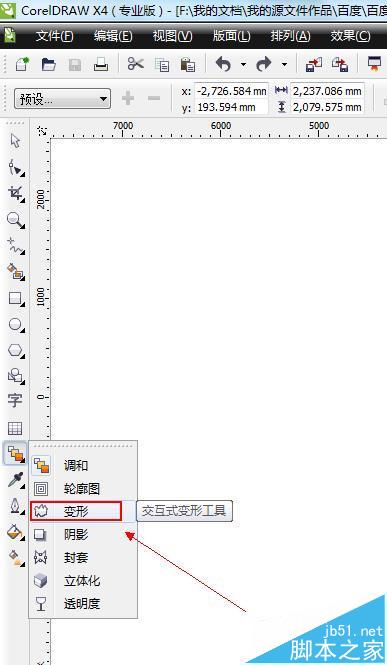 2、如圖所示,在彈出的下拉列表菜單中,我們點擊箭頭所指的“變形”這一項。
