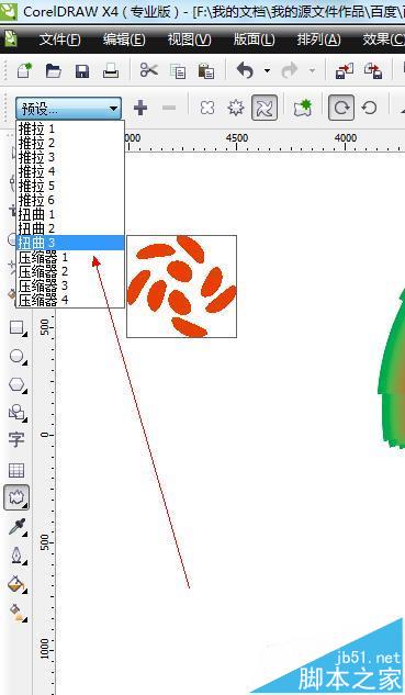 8、如圖所示,在彈出的下拉列表菜單中,我們點擊箭頭所指的這個扭曲3類型。