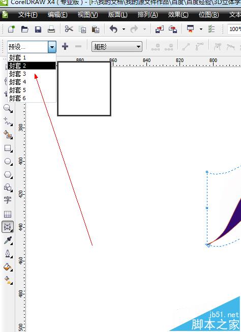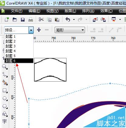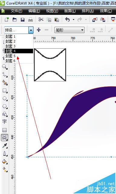 9、如圖所示,在彈出的下拉列表菜單中,我們點擊箭頭所指的“封套4”這個類型。