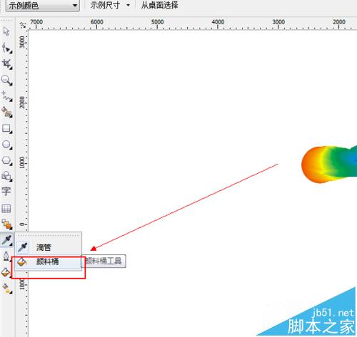 2、如圖所示,在彈出的下拉列表菜單中,我們點擊箭頭所指的“顏料桶”這一項。