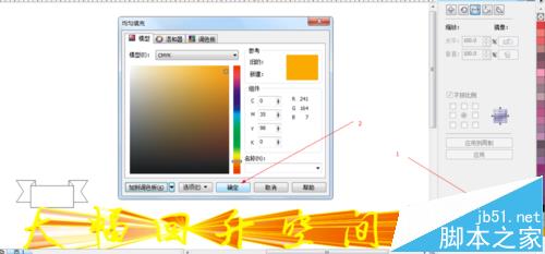 2、如圖所示,我們準(zhǔn)備將這個3D立體字里面的黃色進(jìn)行取色,之后將取到的色為箭頭所指的對話框進(jìn)行填充。