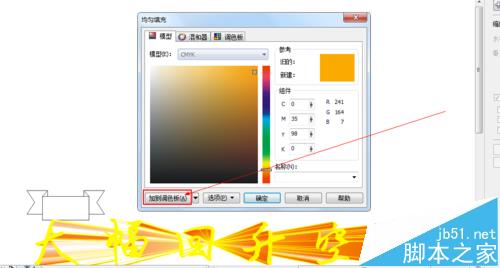 5、如圖所示,在彈出的對話框中,我們鼠標(biāo)點擊箭頭所指的“添加到顏色版(A)”按鈕。