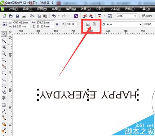 3、選擇需要修改的文本,在先點水平鏡像-再點垂直鏡像(各一次),如圖。