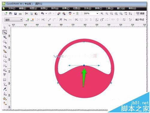 6、使用形狀工具(F10)——刪除底下中間的節(jié)點并對圖形進行調整。如圖