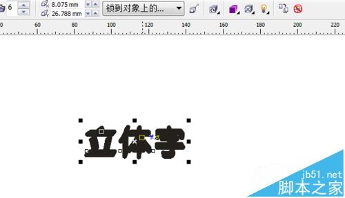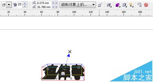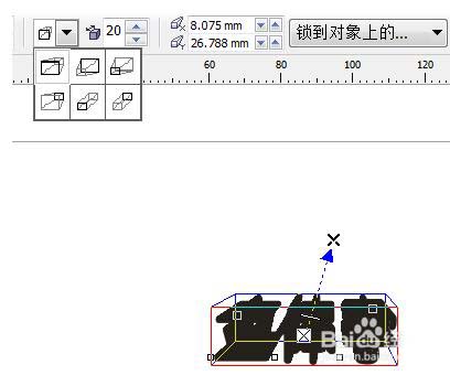鼠標單擊左側工具欄中的“交互式立體化工具”,然后將鼠標放到文字上,進行拖動。一開始拖動的效果并不能一下使人滿意,但是拖動的目的是讓“交互式立體化工具”的屬性欄能夠顯示出來,然后根據(jù)需要進行調整。