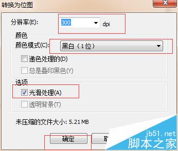 3、點擊位圖,選擇轉(zhuǎn)換為位圖,參數(shù)如圖。